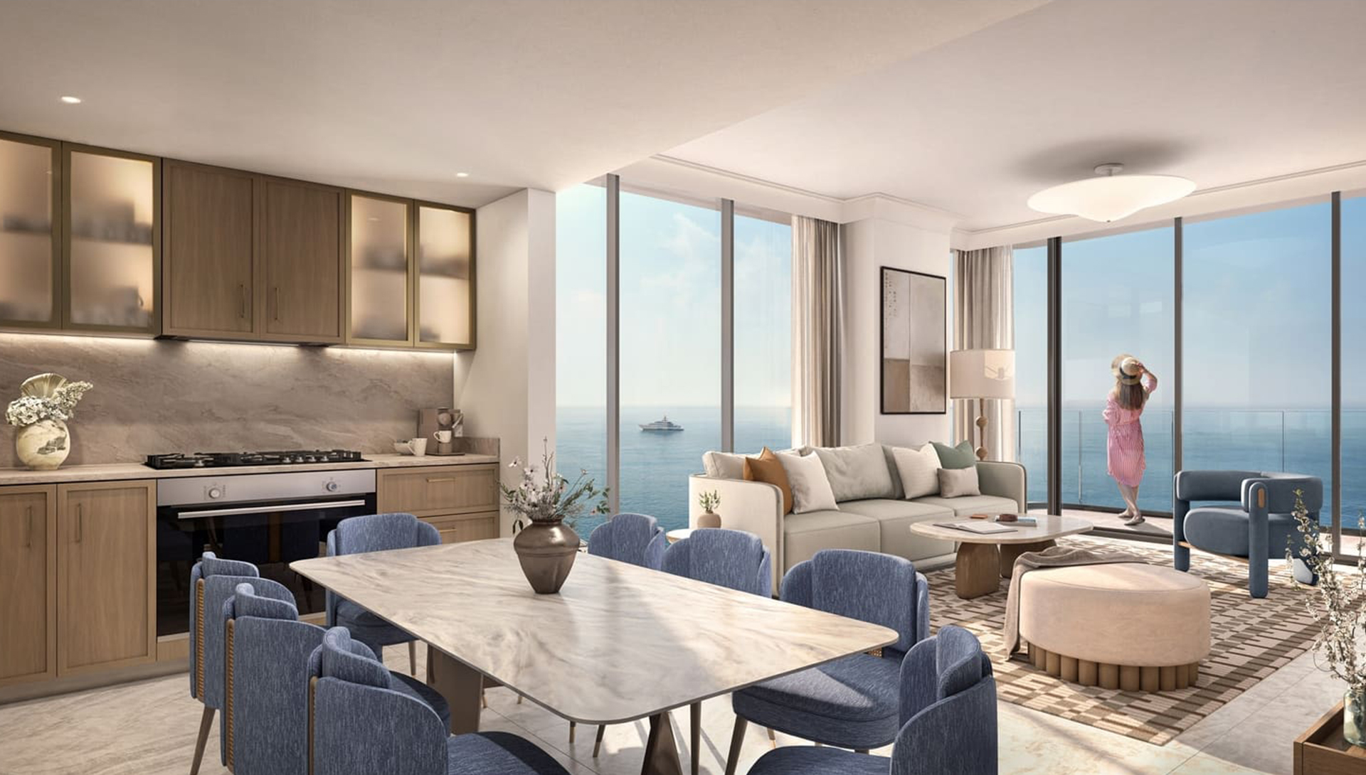 Sleek and contemporary, the apartment buildings of Address Residences Al Marjan Island capture the essence of coastal elegance with their streamlined exteriors. The modern architecture of these 1- to 3- 3-bedroom homes and 4-bedroom penthouses showcases sleek surfaces with large balconies that capture the beauty of the Arabian Sea, and the View community. Ideal for families or residents desiring extra space, townhouses feature stunning views and spacious layouts.