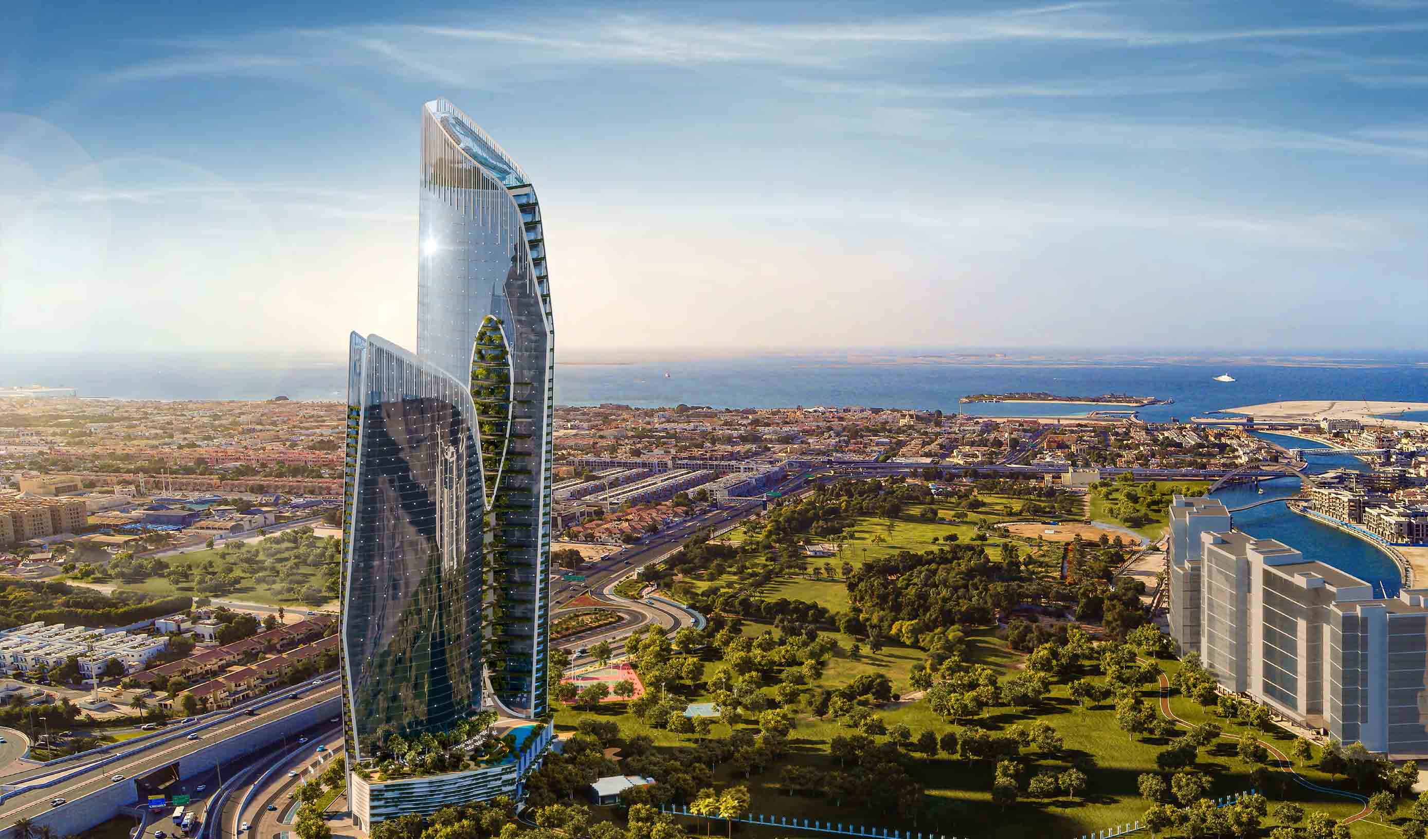 Welcome to Safa One de Grisogono, a distinctive twin-tower development by Damac Properties, offering unparalleled vistas of Safa Park and the Dubai Canal. This extraordinary development features an unprecedented rooftop ecosystem, redefining the concept of luxury living.