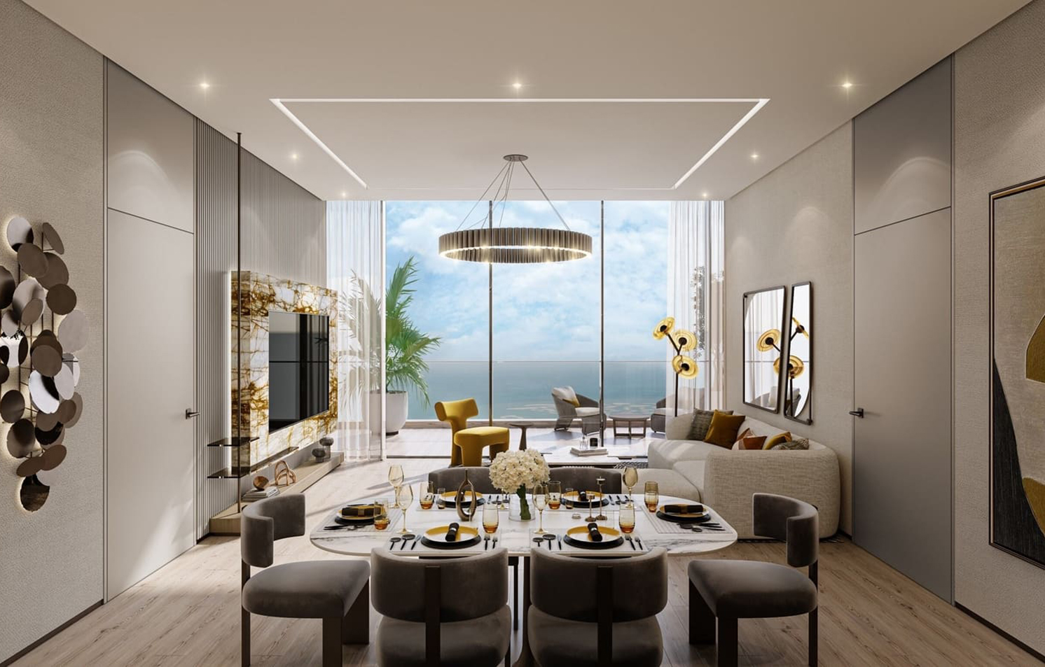 Discover the golden radiance of The Sapphire, an exquisite gem nestled along Sheikh Zayed Road. This stunning residence redefines urban living where panoramic views of the city bring luxury to light. Drawing inspiration from the yellow sapphire, both interior and exterior spaces are adorned with luxurious textures and rich golden hues, setting a tone of timeless elegance and sophistication.